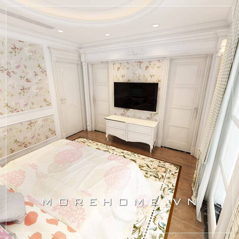 và hiện đại. Một sự lựa chọn hoàn hảo cho căn phòng ngủ biệt thự tân cổ điển là một kệ tivi gỗ tự nhiên với đường nét tinh tế, ấn tượng và hiện đại.