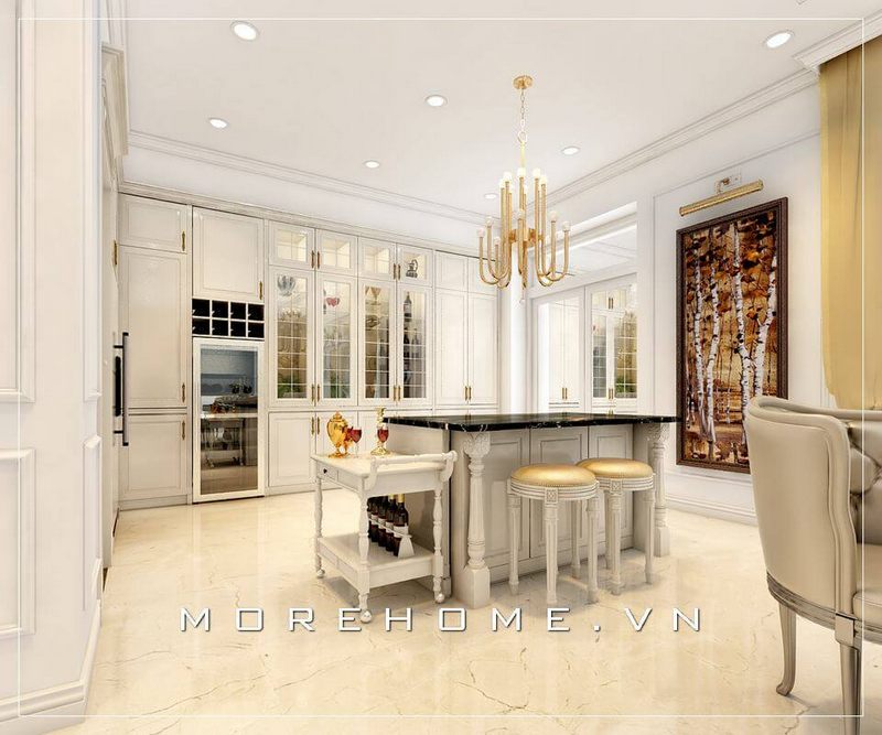 Tạo ra một không gian sang trọng và đẳng cấp bằng cách thiết kế nội thất biệt thự tân cổ điển với tone màu trắng làm chủ đạo.